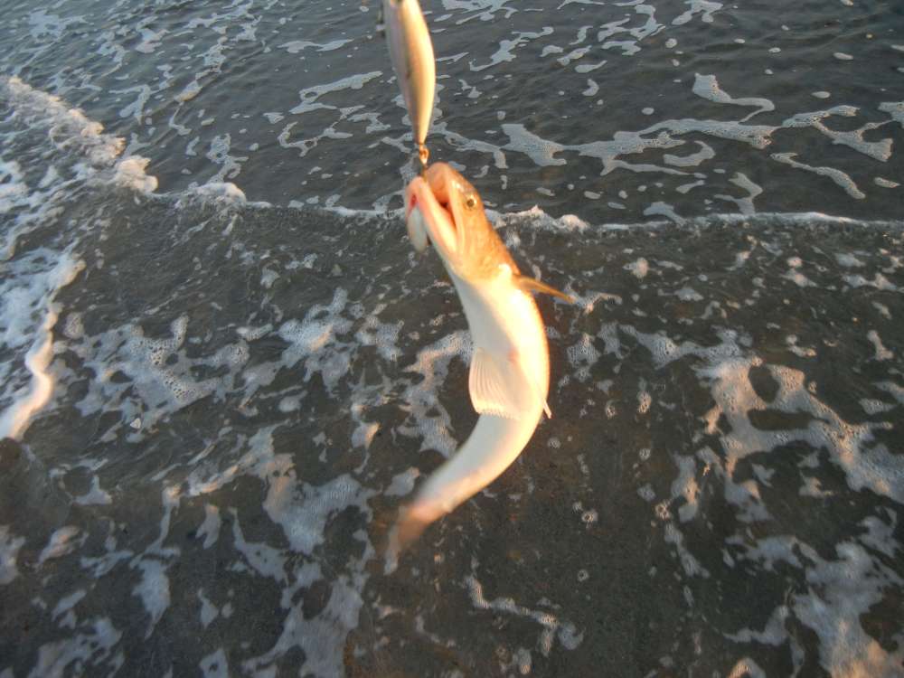 サーフに着くと波は小さく、既に5人ほど散らばって竿を振ってます。