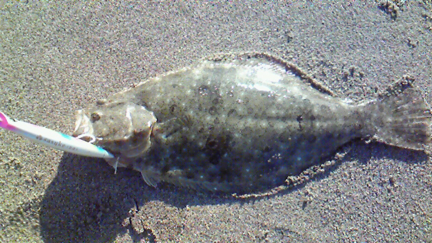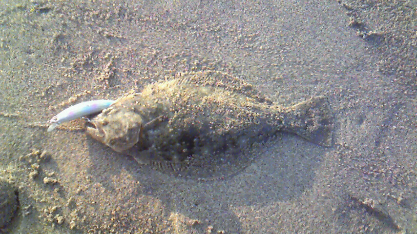 姿を見せたのは・・・ゲゲッ!50はあるヒラメ!泣