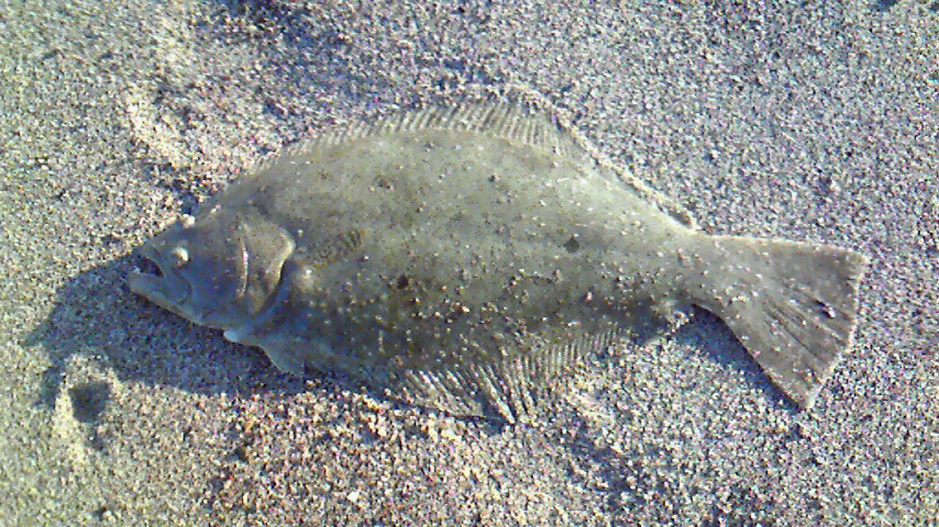 1時間ほどして右の方で魚が上がります。・・・ヒラメだ!